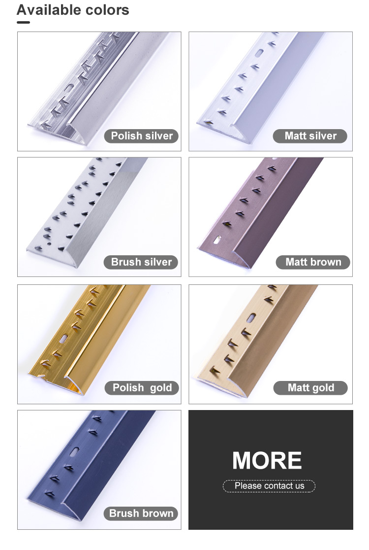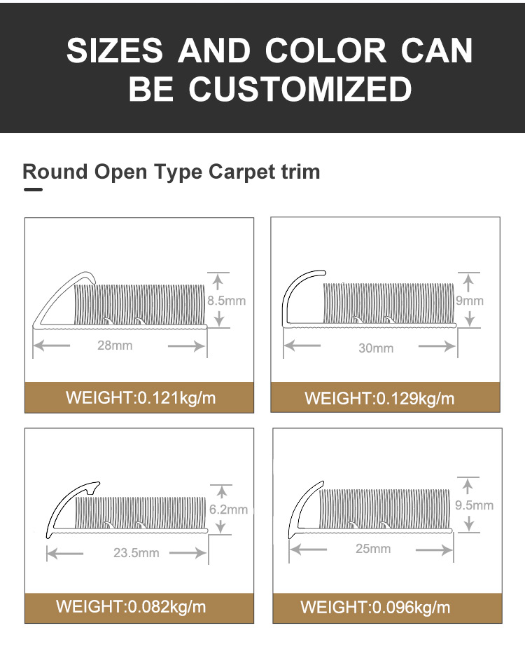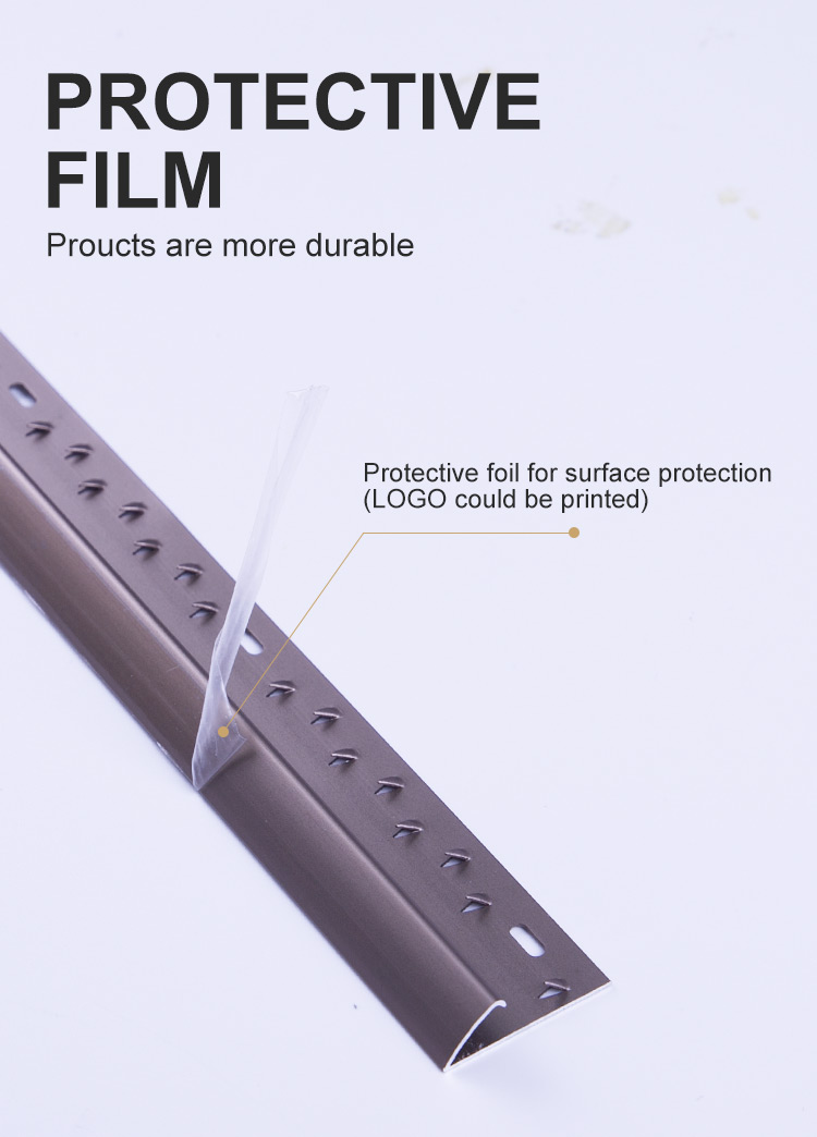 形状:圆弧开口型 宽度: 6mm/8mm/10mm/12mm/可定制高度 长度:2.5m/2.7m/可定制长度 打洞:方形/圆形/三角形/星形/钻石形/字母/可定制图案 表面处理:抛光、阳极氧化处理、粉末涂层等