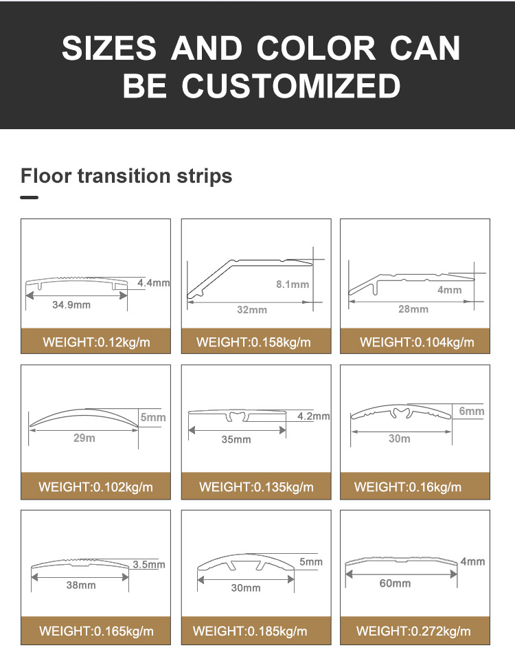 形状:一字型 宽度: 2.5mm/3mm/6mm/可定制高度 长度:6m/可定制长度 打洞:方形/圆形/三角形/星形/钻石形/字母/可定制图案 表面处理:抛光、阳极氧化处理、粉末涂层等